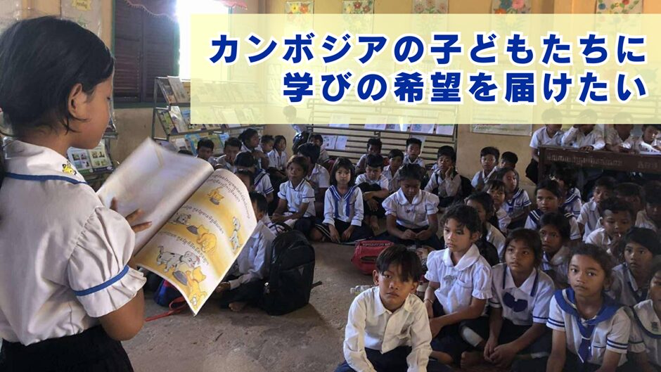 ・タイトル「子どもたち全員に机、暗い教室に希望の光を。カンボジア小学校支援」