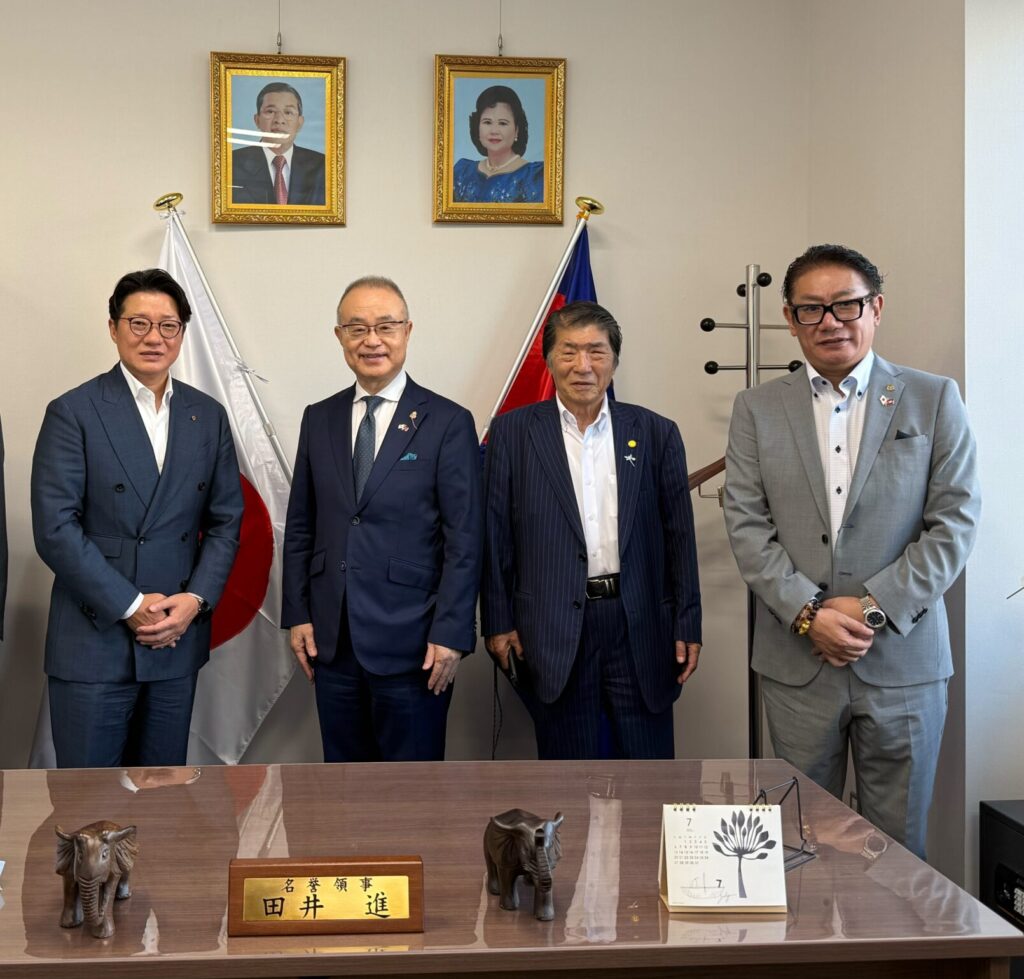 2025年7月30日、JATIC(日本先端技術国際インフラ協力機構)の法人会員であり、幹事会社でもある 株式会社ビルメン鹿児島 の代表取締役会長 野元 一喜 氏、代表取締役社長 野元 一臣 氏 が、宮城県仙台市に所在する 在仙台カンボジア名誉領事館 を表敬訪問しました。